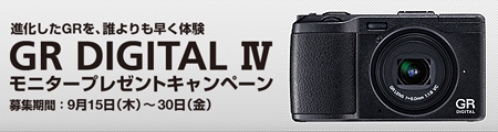 進化したGRを、誰よりも早く体験。GR DIGITAL IV モニタープレゼントキャンペーン
