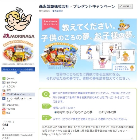 本日より、森永製菓お菓子詰め合わせプレゼント!Facebookキャンペーンがスタートしました。 皆様の子どもの頃の夢、お子様の夢を募集しております。奮ってご参加ください! Facebookアカウントをお持ちでない方でもご […]