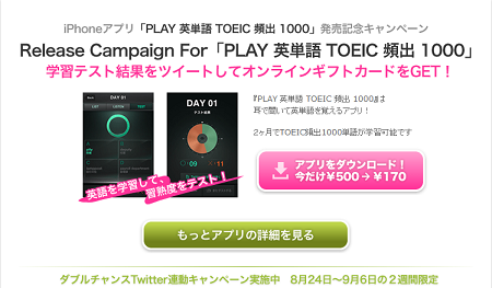 iPhoneアプリ「PLAY 英単語 TOEIC 頻出 1000」発売記念キャンペーンスタート!