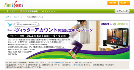 Kinect(キネクト)のツィッターアカウント開設記念キャンペーン
