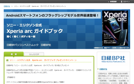 ソニー・エリクソン公式 Xperia arc ガイドブック プレゼントキャンペーン