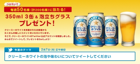 泡にこだわった新ジャンル「クリーミーホワイト」のTwitter連動キャンペーンが開始しました。 ■つぶやいて、当てよう!クリーミーアワーキャンペーン http://www.sapporobeer.jp/creamywhi […]
