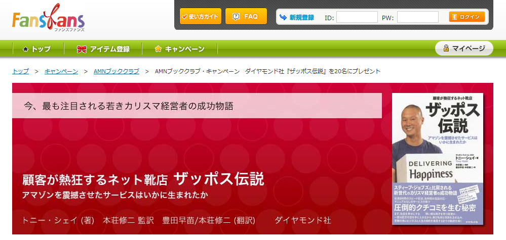 CRAVIAブッククラブ・キャンペーン ダイヤモンド社『ザッポス伝説』を20名にプレゼント