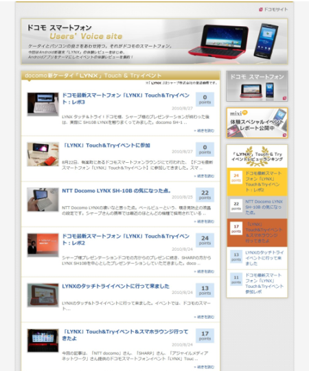 8/22(日)に開催致しましたドコモ最新スマートフォン「LYNX」Touch&Tryイベントにご参加されたブロガーさんの体験レビューをまとめたサイト「ドコモ スマートフォンUsers’ Voice site」 […]