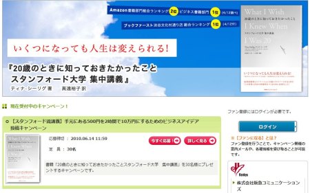 書籍「20歳のときに知っておきたかったこと スタンフォード大学 集中講義」 ファンサイトオープンのお知らせ