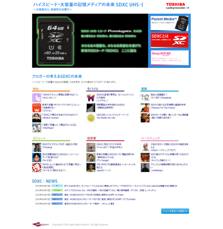 東芝のSDXCスペシャルサイト 「ハイスピード・大容量の記憶メディアの未来 SDXC UHS-I」オープンのお知らせ