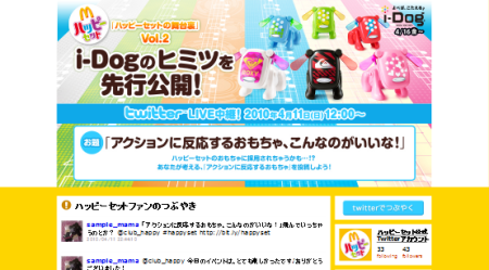 マクドナルド 犬の形をしたロボットペット「idog」ハッピーセット Twitterライブ中継サイトのお知らせ