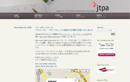 「JTPA」シリコンバレー・カンファレンス2009のお知らせ