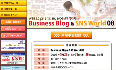 IDGジャパン「Business Blog&SNS World 08」に協賛しています