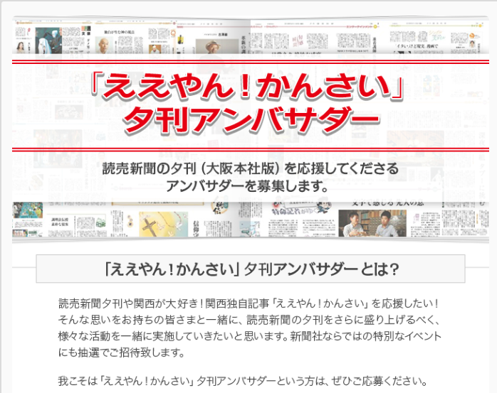 あなたのチカラで新聞紙面をパワーアップ!読売新聞「ええやん!かんさい」夕刊アンバサダー大募集!!