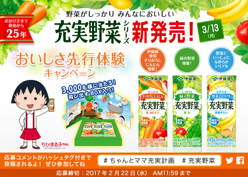 伊藤園『充実野菜シリーズ新発売!おいしさ先行体験キャンペーン』開始のお知らせ