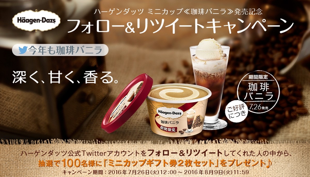 ハーゲンダッツ ミニカップ≪珈琲バニラ≫ 発売記念 フォロー&リツイートキャンペーン