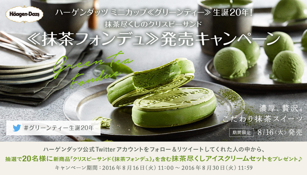 ハーゲンダッツ ミニカップ≪グリーンティー≫生誕20年! 抹茶尽くしのクリスピーサンド≪抹茶フォンデュ≫発売キャンペーン