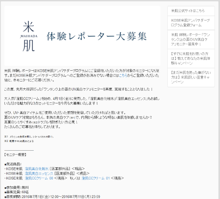 米肌 体験レポーター 「ワンランク上の夏のUV美白ケア」モニター募集開始!
