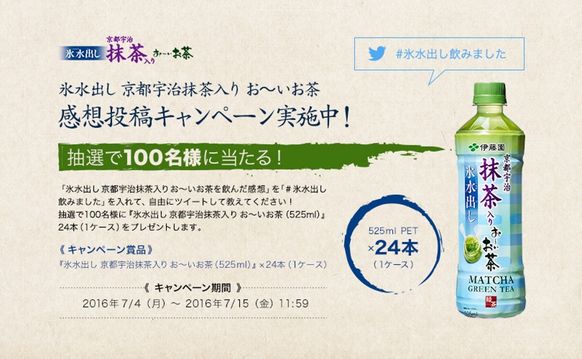 伊藤園「氷水出し 京都宇治抹茶入り お~いお茶」感想投稿キャンペーン開始