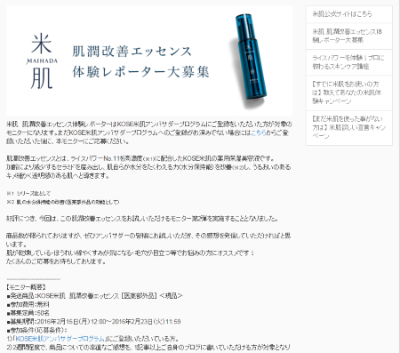 米肌「肌潤改善エッセンス体験レポーター 第2弾」募集開始!