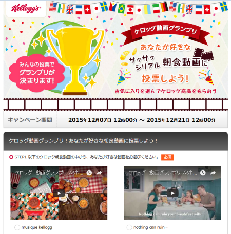 ケロッグ動画グランプリ 「あなたが好きなサクサクシリアル朝食動画に投票しよう!」 キャンペーン開催!