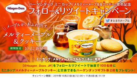 ハーゲンダッツ ミニカップ『メルティーメープル&クッキー』 発売記念 フォロー&リツイートキャンペーン