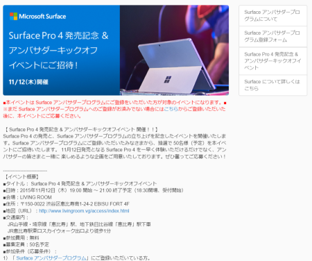 Surface Pro 4発売記念&アンバサダーキックオフイベント参加者募集中!
