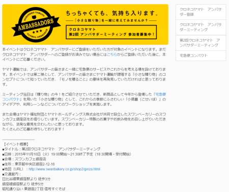 11/10(火)開催!第2回クロネコヤマト アンバサダーミーティング