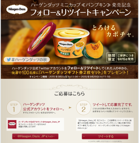 ハーゲンダッツ ミニカップ≪パンプキン≫発売記念 フォロー&リツイートキャンペーン実施中!!!