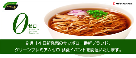 9月8日(火)開催:「サッポロ一番グリーンプレミアムゼロ」試食イベント