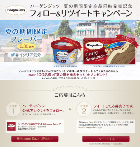 ハーゲンダッツ 夏の期間限定商品同時発売記念 フォロー&リツイートキャンペーン実施中!!!