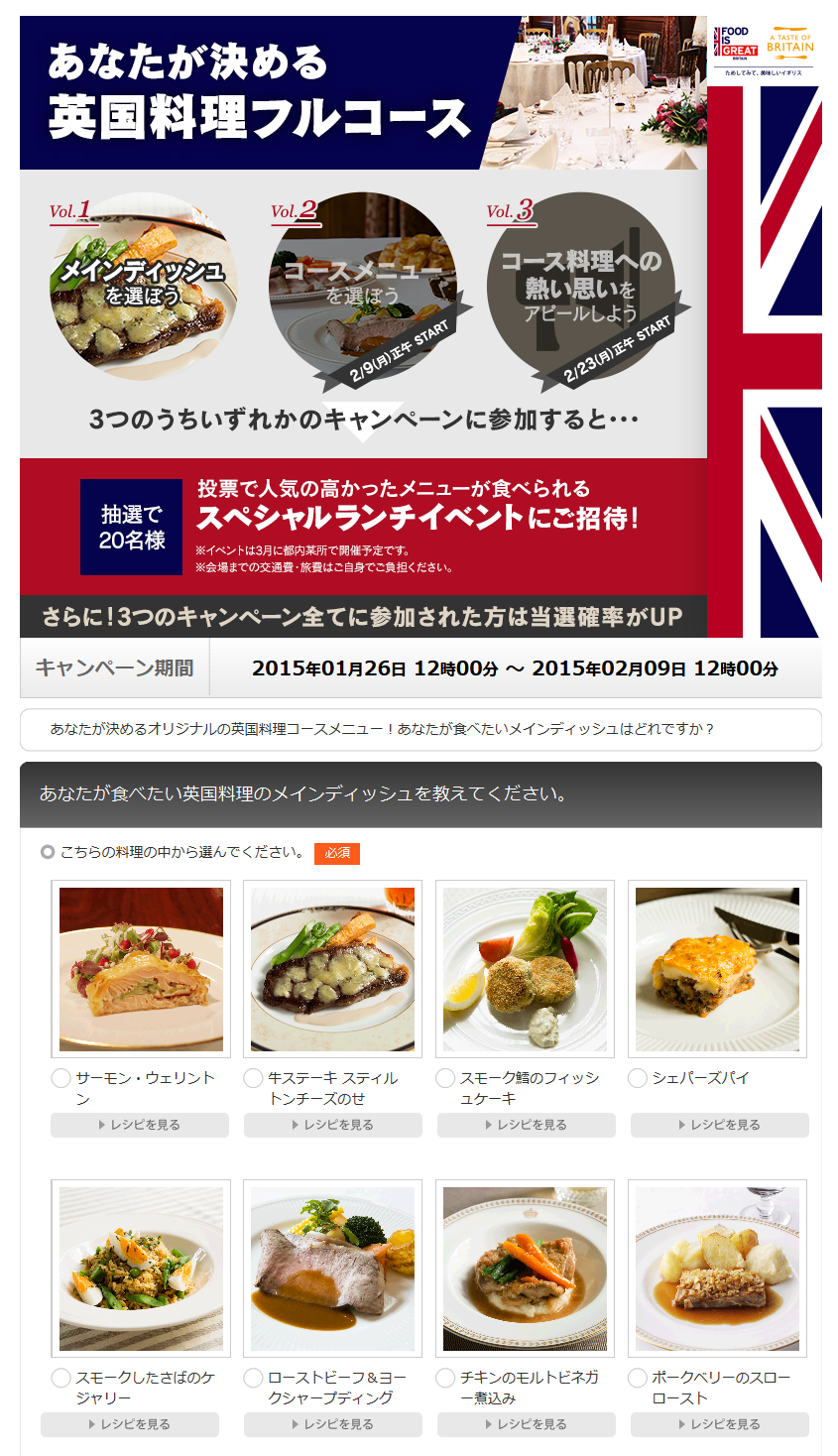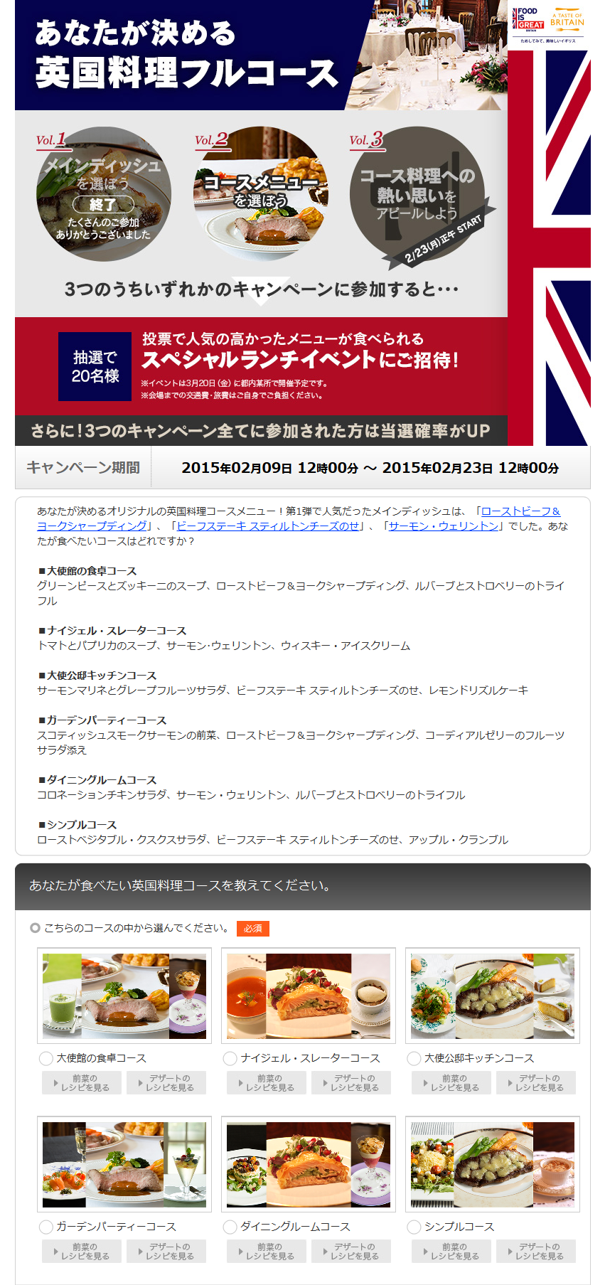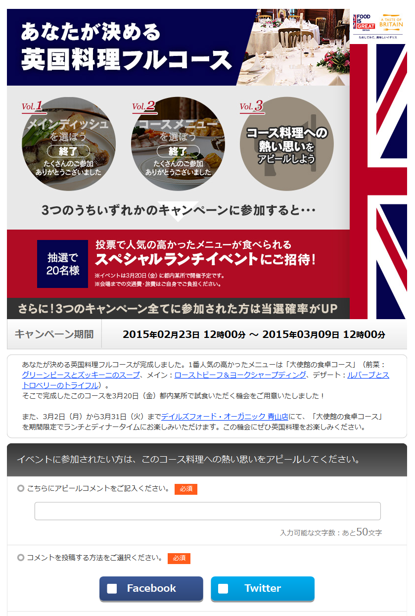 「あなたが決める英国料理のフルコース ソーシャルメディアキャンペーン」第3弾スタート!