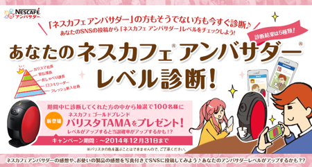 テレビCMでもおなじみのネスカフェ アンバサダーで、ネスカフェ アンバサダーレベル診断に参加して下さった方の中から抽選で100名様にネスカフェ ゴールドブレンド バリスタ TAMAが当たるキャンペーン開催中です。 ■あな […]