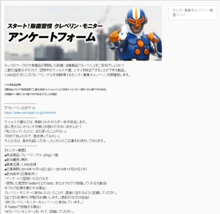 スタート!除菌習慣 クレベリン・モニター募集キャンペーン