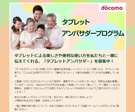 ドコモ「タブレット アンバサダープログラム」がスタート!