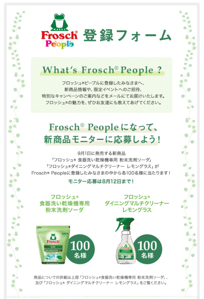 Frosch® People募集開始!今だけモニターキャンペーン実施中!!