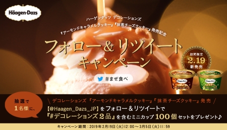 ハーゲンダッツ デコレーションズ『アーモンドキャラメルクッキー』『抹茶チーズクッキー』発売記念 フォロー&リツイートキャンペーン