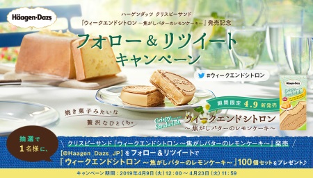 ハーゲンダッツ クリスピーサンド『ウィークエンドシトロン ~焦がしバターのレモンケーキ~』 発売記念 フォロー&リツイートキャンペーン
