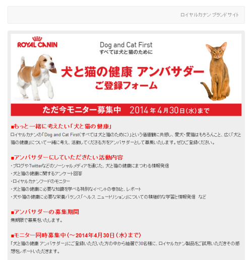 モニター募集中!「犬と猫の健康 アンバサダー」登録スタート