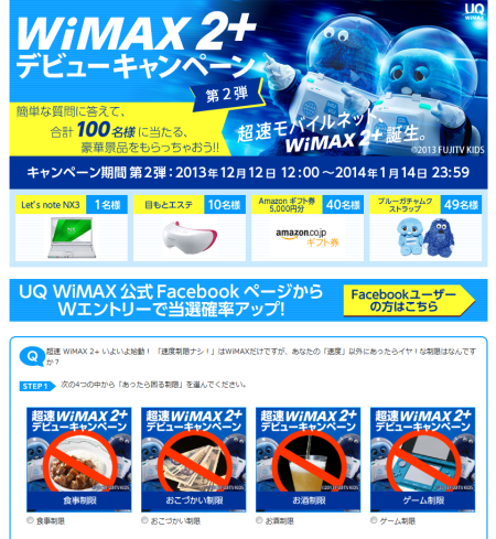 UQ WiMAX キャンペーン「WiMAX 2+デビューキャンペーン(第2弾)」スタート