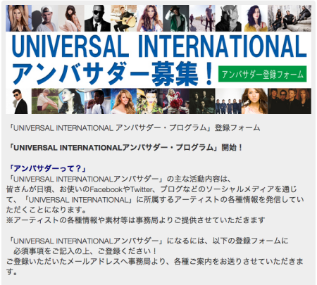「UNIVERSAL INTERNATIONALアンバサダー・プログラム」開始!