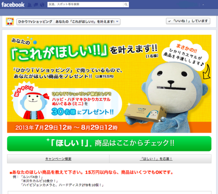 ひかりTVショッピングがFacebookページにて、「ひかりTVショッピング あなたの『これがほしい!!』を叶えます!!」というキャンペーンを実施中です。 参加方法はとても簡単。 以下のURLからひかりTVショッピングF […]