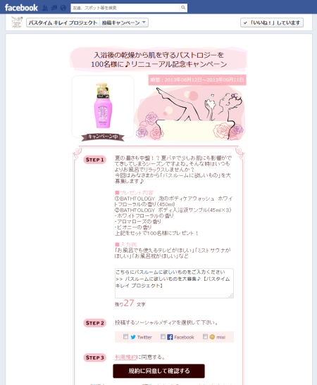 ”入浴後の乾燥から肌を守る”人気のインバスケア製品「バストロジー」のリニューアル発売を記念し、キャンペーンが開催されます。 キャンペーンではその新しいバストロジーのセットを抽選で100名様にプレゼント! キャンペーンへの […]