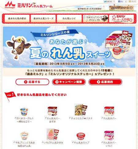 あなたが選ぶ!夏のれん乳スイーツ投票キャンペーン 森永れん乳シリーズの愛らしい牛マーク、 「ミルリン」の夏のキャンペーンがスタート。 夏にピッタリだと思うれん乳シリーズ製品を選んで投票してください! 投票で1位になったれ […]