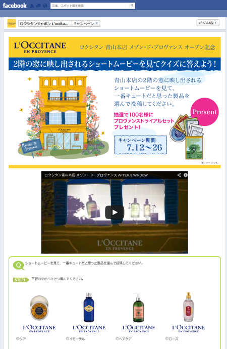 ロクシタン 青山本店 メゾン・ド・プロヴァンス オープン記念 2階の窓に映し出されるショートムービーを見てクイズに答えよう!