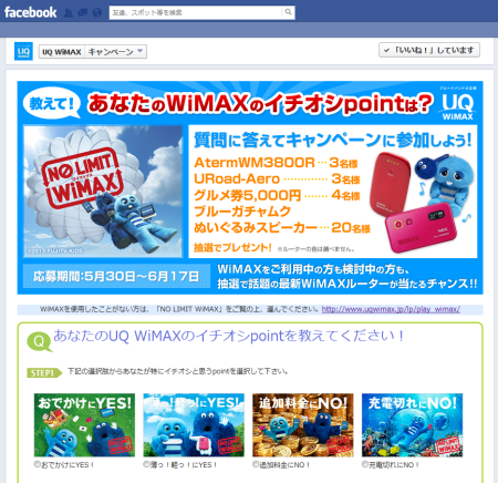 UQ WiMAX キャンペーン「教えて!あなたのWiMAXのイチオシpointは?」スタート