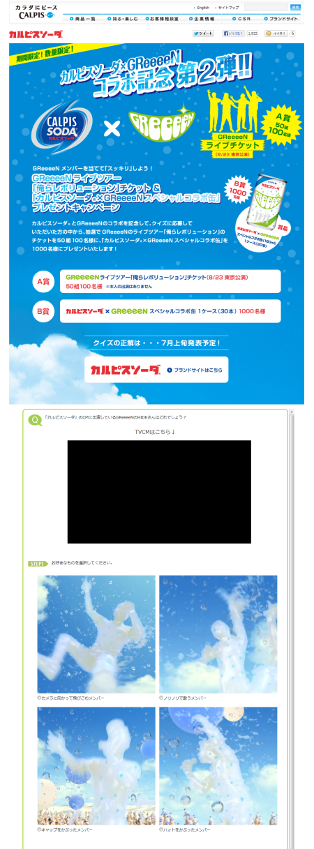 GReeeeNメンバーを当てて「スッキリ」しよう! 「カルピスソーダ」とGReeeeNのコラボを記念して、 クイズに応募していただいた方の中から抽選で GReeeeNのライブツアー「俺らレボリューション」のチケットを50 […]