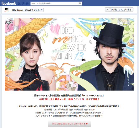 ■「MTV VMAJ 2013 観覧チケット応募」 http://mtv.st-app.jp/vmaj2013/ticket/ 豪華アーティストが競演する国際的音楽授賞式「MTV VMAJ 2013」 6月22日(土) […]