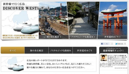 「新幹線で行く広島 DISCOVER WEST レポート」がオープン致しましたのでご連絡いたします。 4名のブロガーさんに3つのコースに分かれていただき、モデルコースをベースに広島の魅力や旅行中に気になる場所などレポート […]