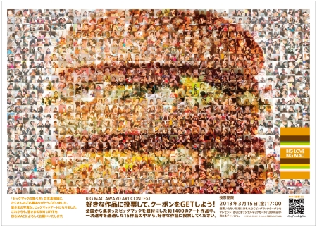 皆さまより、投稿いただいた、ユニークでパワフルな「ビッグマックの食べ方」写真が、 ビッグマックアートになりました。 2013年3月8日より、全国のマクドナルドのトレイマット(※1)でご覧頂けます。 ぜひ、みんなのユニーク […]