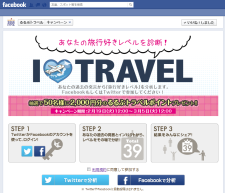 るるぶトラベル6周年記念Facebookキャンペーン! あなたの過去の発言から「旅行好きレベル」を分析します。 FacebookもしくはTwitterで参加してください! キャンペーンに参加すると、抽選で50名様にるるぶ […]