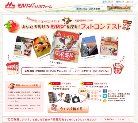 森永れん乳シリーズおなじみの「ミルリン」の新しいキャンペーンがスタート。 その名も「ミルリンを探せ!フォトコンテスト」 森永れん乳シリーズの各種製品はもちろんのこと、牛や牛っぽいモノもOK。 フォトコンテストに投稿してく […]