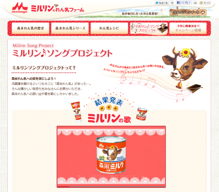11月13日に公開になりました、森永乳業様のミルリンのれん乳ファーム内にある「ミルリン♪ソングプロジェクト」にて、ミルリンの歌が公開されました。 長年、森永乳業の練乳のトレードマークであった牛マークに「ミルリン」という名 […]