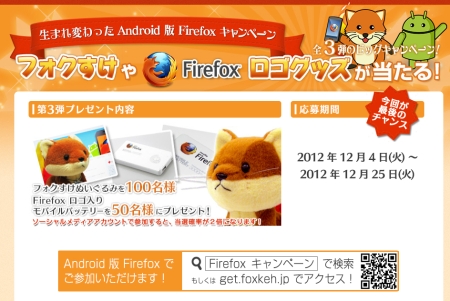 【ラストチャンス】非売品のフォクすけが当たる!生まれ変わった Android 版 Firefoxキャンペーン